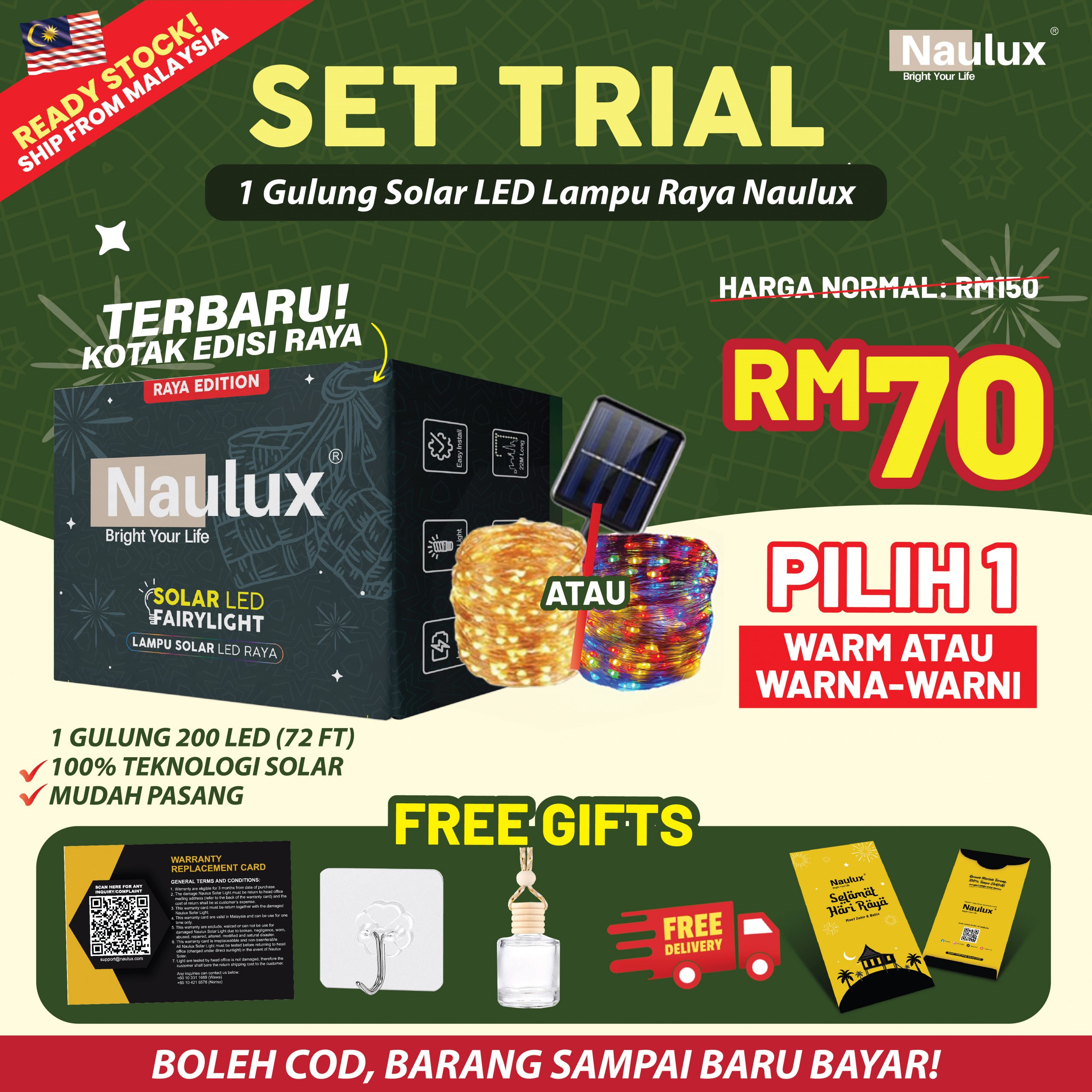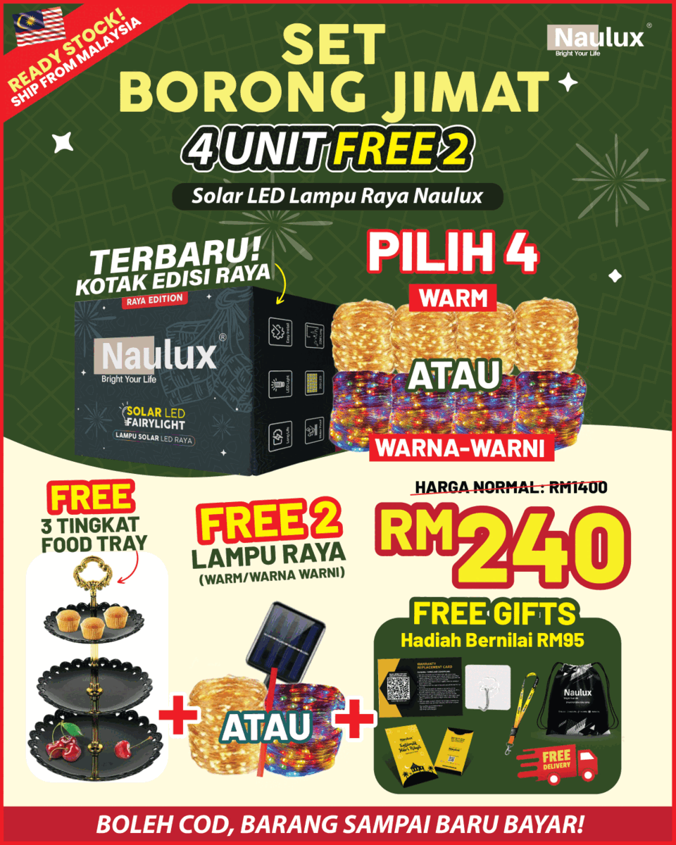 TAK PERLU RISAU LAMPU SOLAR NAULUX NI ADA 100% JAMINAN